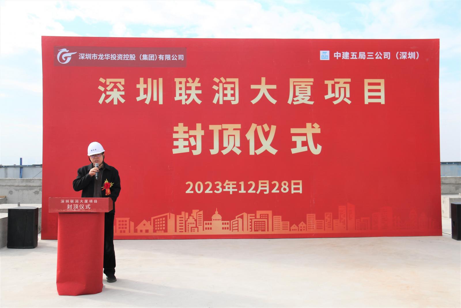 龙华区国有资产监督管理局副局长周远欢同志,龙华投控集团党委副书记、总经理李正勇同志,龙华区住建局质安站、科创局、工信局、区投资服务中心、街道党工委等单位领导共同出席了此次封顶仪式。