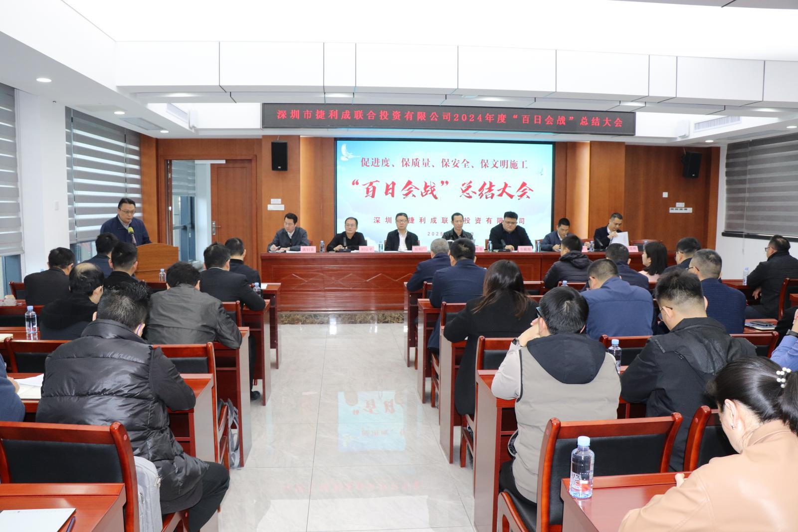 1月10日,龙华投控集团辖属企业捷利成公司 2024 年度“百日会战 ”总结大会隆重召开,集团副总经理林思章,集团本部建设管理部、成本管理部负责人,捷利成公司领导班子成员、部门负责人及各项目参建单位相关负责同志、施工代表等共同出席了本次大会。